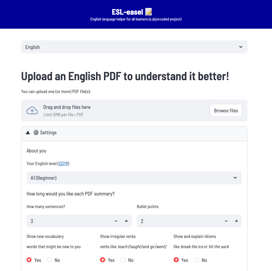 LLM (AI)-powered app that helps English learners understand PDFs