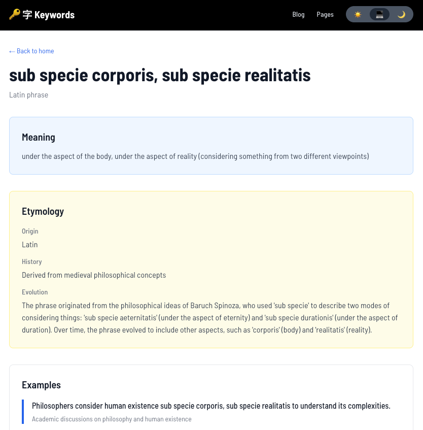 ^ A phrase query results example with origin, meaning, etymology and examples!