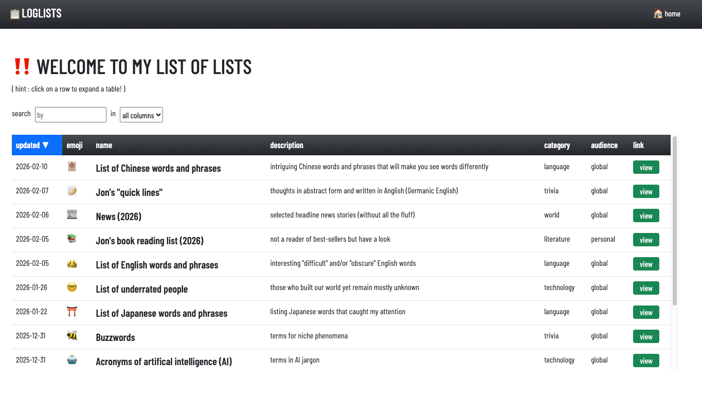 Loglists comes from a wish to show small bits of information from my Google Sheets spreadsheets, without having to re-copy the data onto somewhere else!