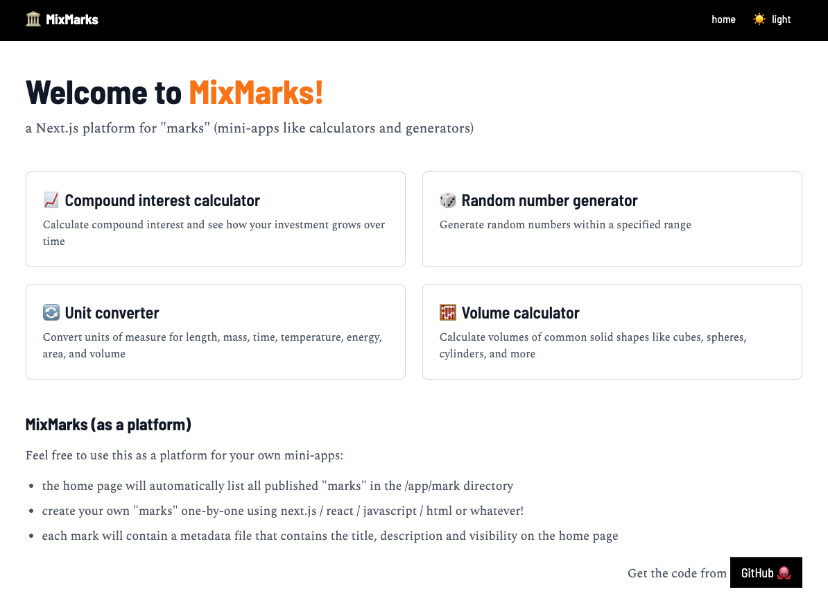MixMarks provides a platform for building and housing mini-apps like calculators and generators: