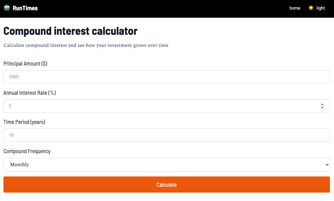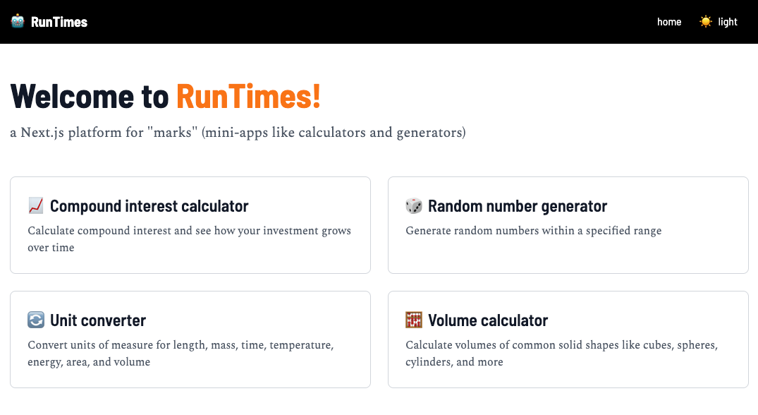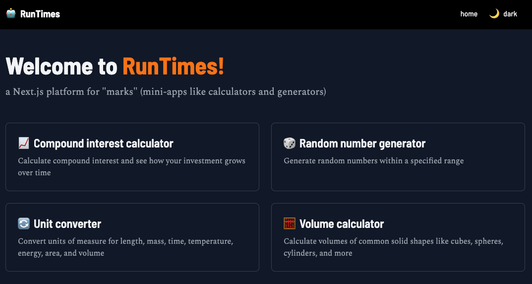 RunTimes ... a Next.js starter for marks ("mini-apps") like "calculators" and "generators"